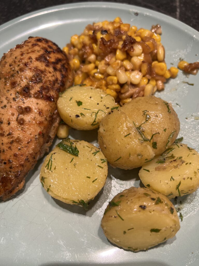 - Serve and enjoy your creamy lemon herb baby potato salad!